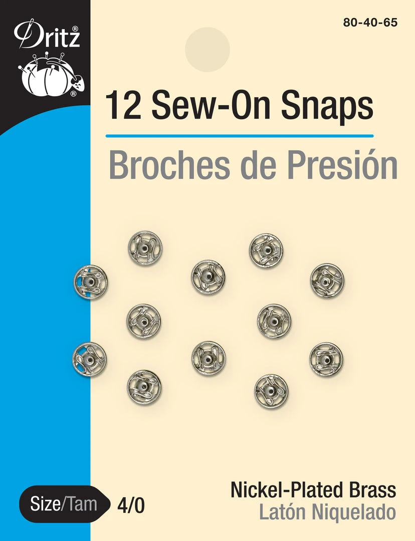 Use the Dritz Size 4/0 Sew-On Snaps Pack of 12 as garment closures for your coats, sweatshirts, cardigans and other apparel. Crafted for durability and toughness, these sew-on snaps are easy to use and a valuable addition to your sewing kit. Choose from a variety of sizes to suit your specific requirements.