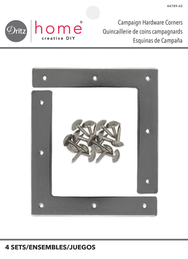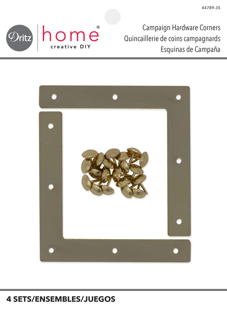 Dritz Home campaign hardware is decorative non-functioning hardware that is applied to the surface of woodworking projects to give them a professional finish – simply nail it into place using the provided nails. This “L” shaped hardware can be aligned in the corners of furniture pieces or accessories, but it can also be artfully arranged to create interesting surface patterns and designs. Campaign hardware is ideal for a variety of DIY projects such as drawers, chests, trays, boxes, mirrors and more.