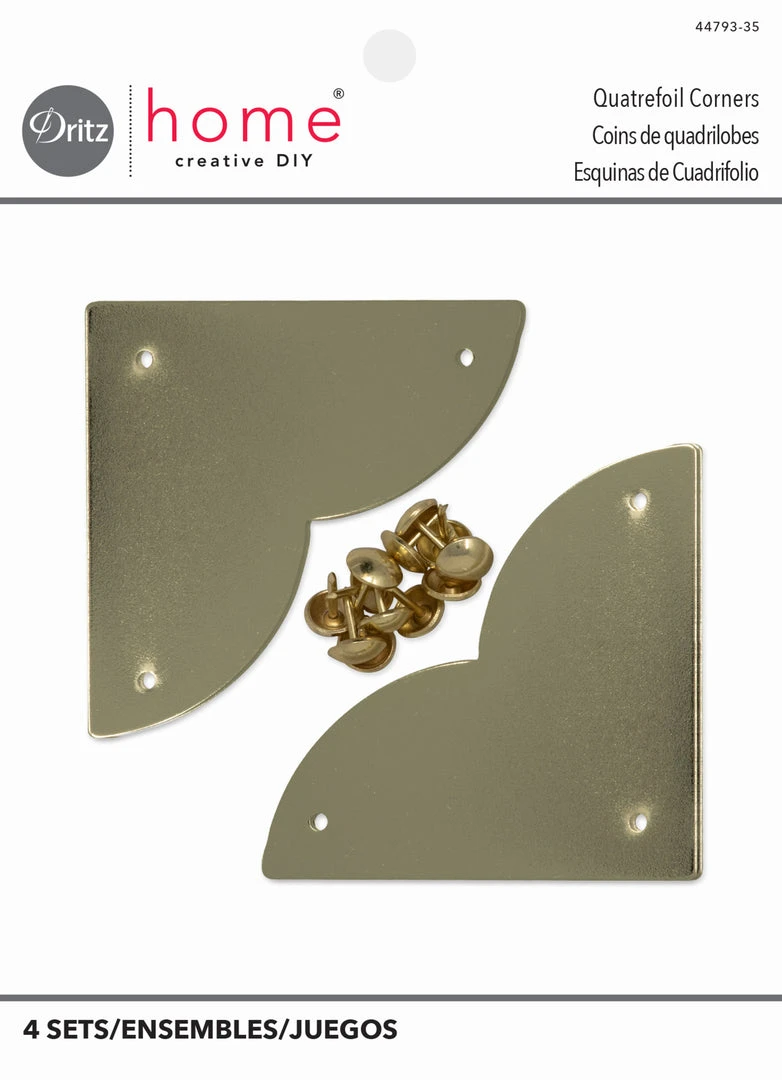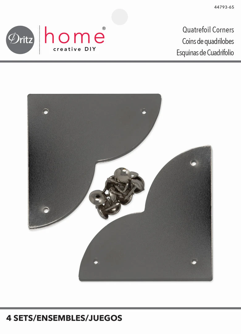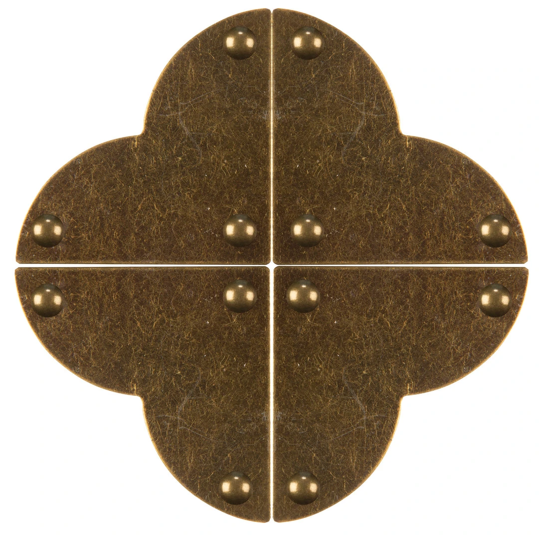 Dritz Home campaign hardware is decorative non-functioning hardware that is applied to the surface of woodworking projects to give them a professional finish – simply nail it into place using the provided nails. The straight-edged side of this quatrefoil hardware can be aligned in the corners of furniture pieces or accessories, but it can also be artfully arranged to create interesting surface patterns and designs. Campaign hardware is ideal for a variety of DIY projects such as drawers, chests, trays, boxes, mirrors and more.