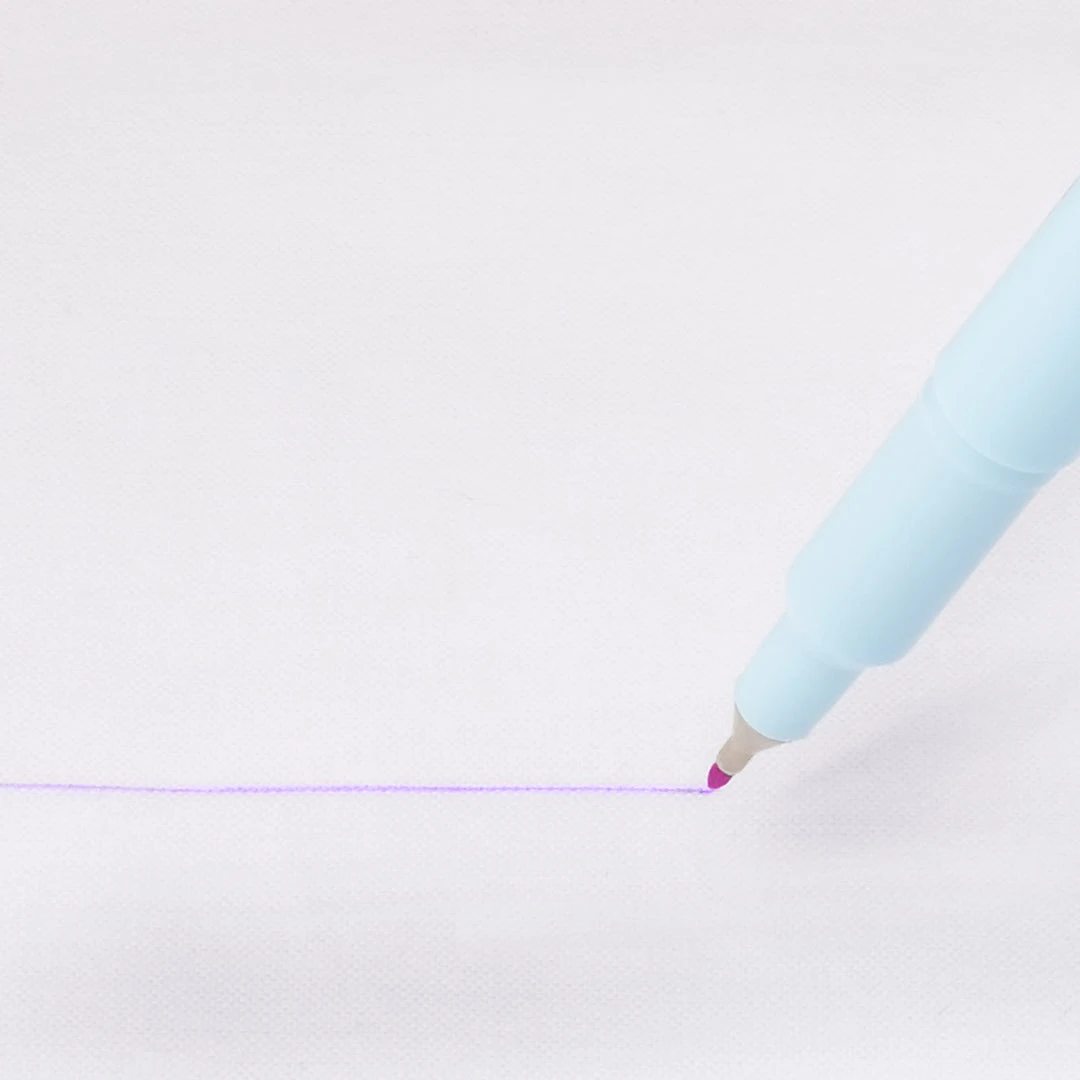 - The pen makes a bright purple mark, yet the marks will vanish without washing