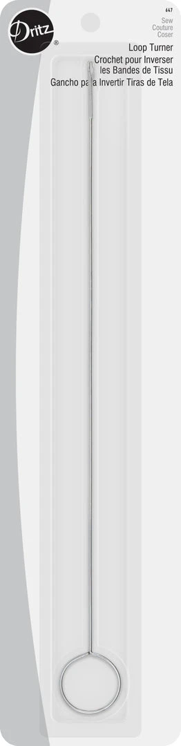 Use the Dritz Loop Turner 9-1/2″ for fabric cylinders that need to be turned right side out to make narrow straps, button loops and frog closures. This simple and handy tool slides through the bias tubing while the latch hook on the end catches the end of the fabric and pulls it through the tube. It is perfect for making spaghetti straps, frog closures, button loops, Chinese ball buttons, purse straps and more.