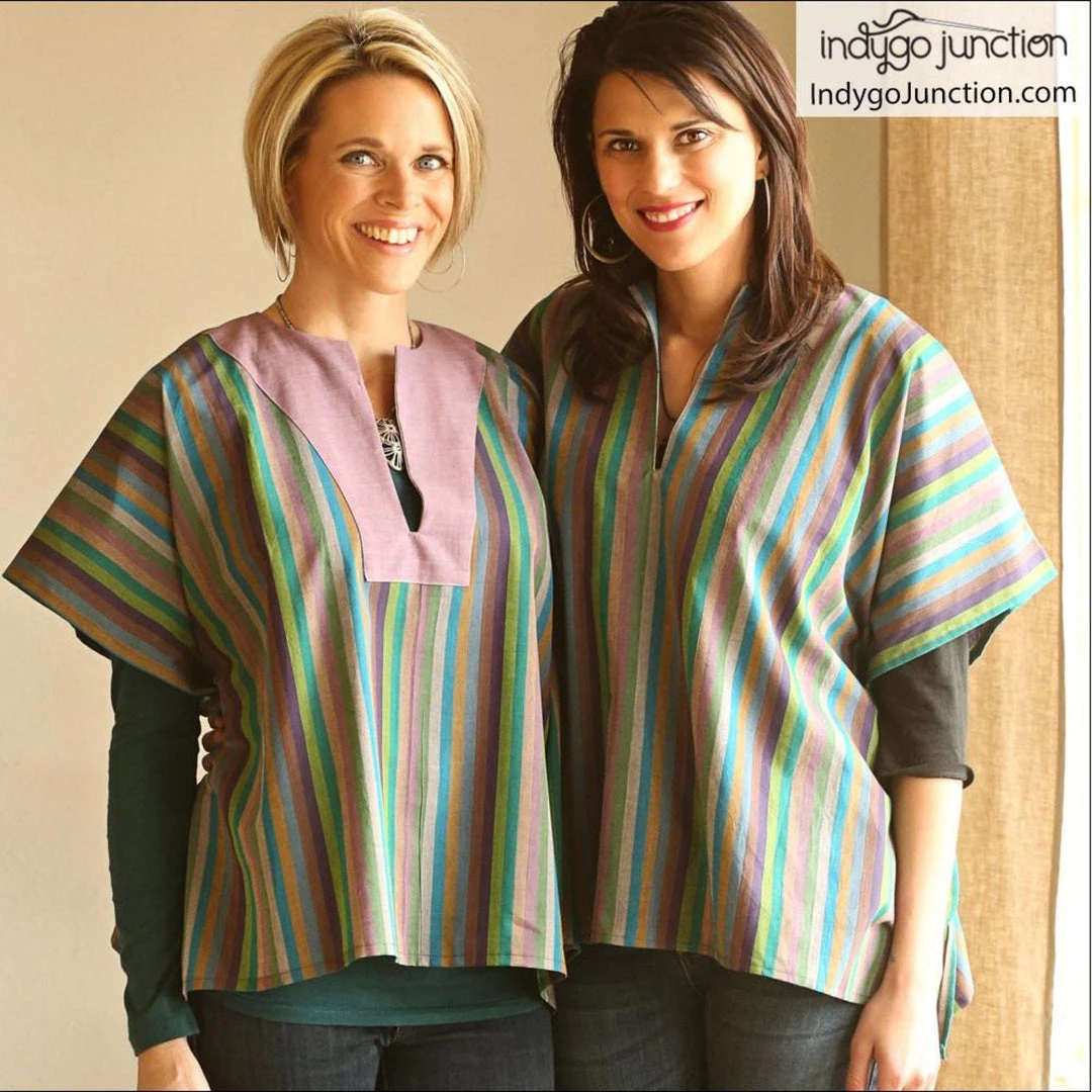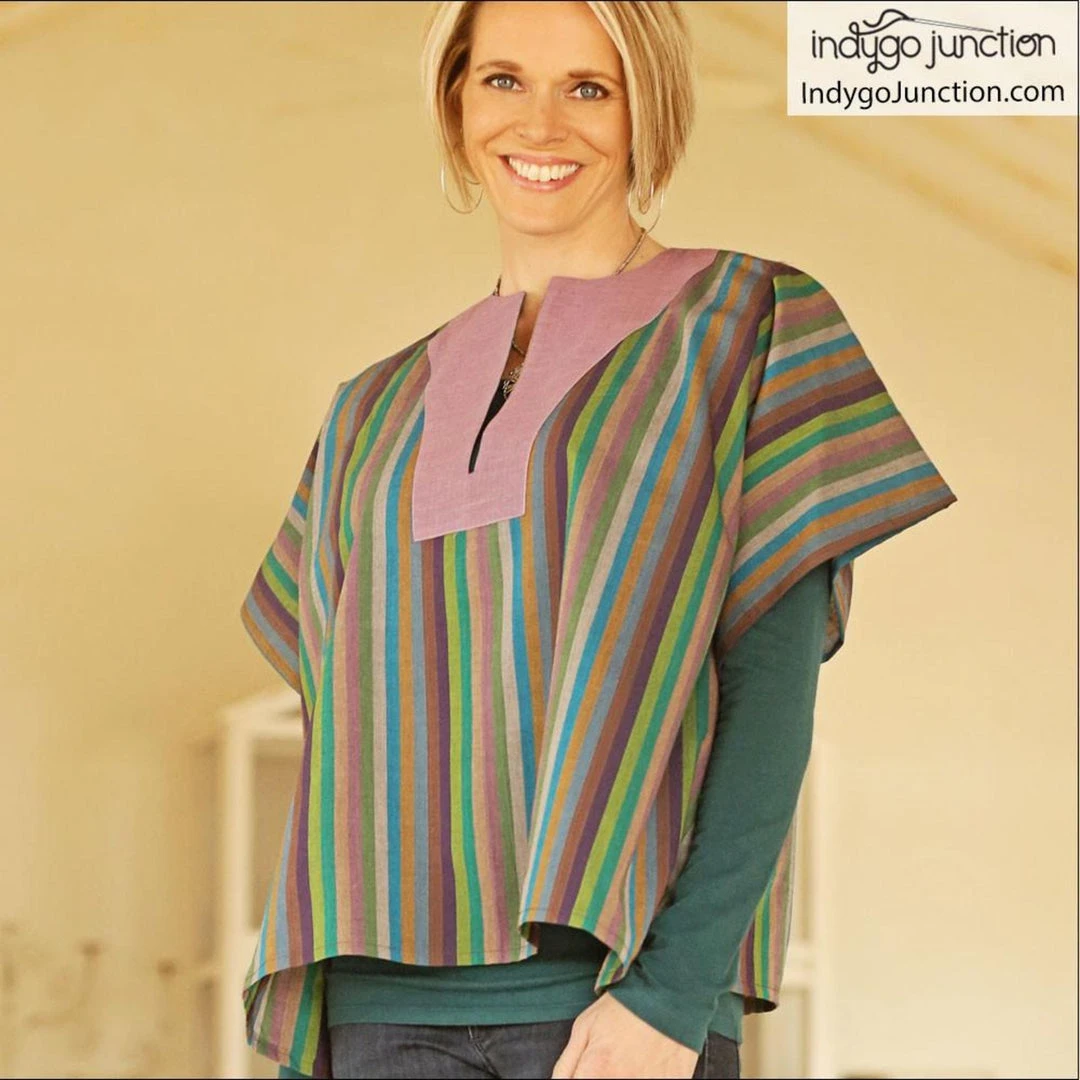 This loose fitting top is made to fit most. We offer two lengths: mid-hip and mid-thigh, but you can easily lengthen (additional yardage will be required). The Caftan features two side side seam options (partial or full seam). Make the facings a feature by creating it out of a contrast fabric, or keep it classic with a simple inside facing. We recommend a thinner lightweight fabric like woven shot cotton, voile or a fabric that drapes well like rayon or batik. One size fits up to 45″ bust.