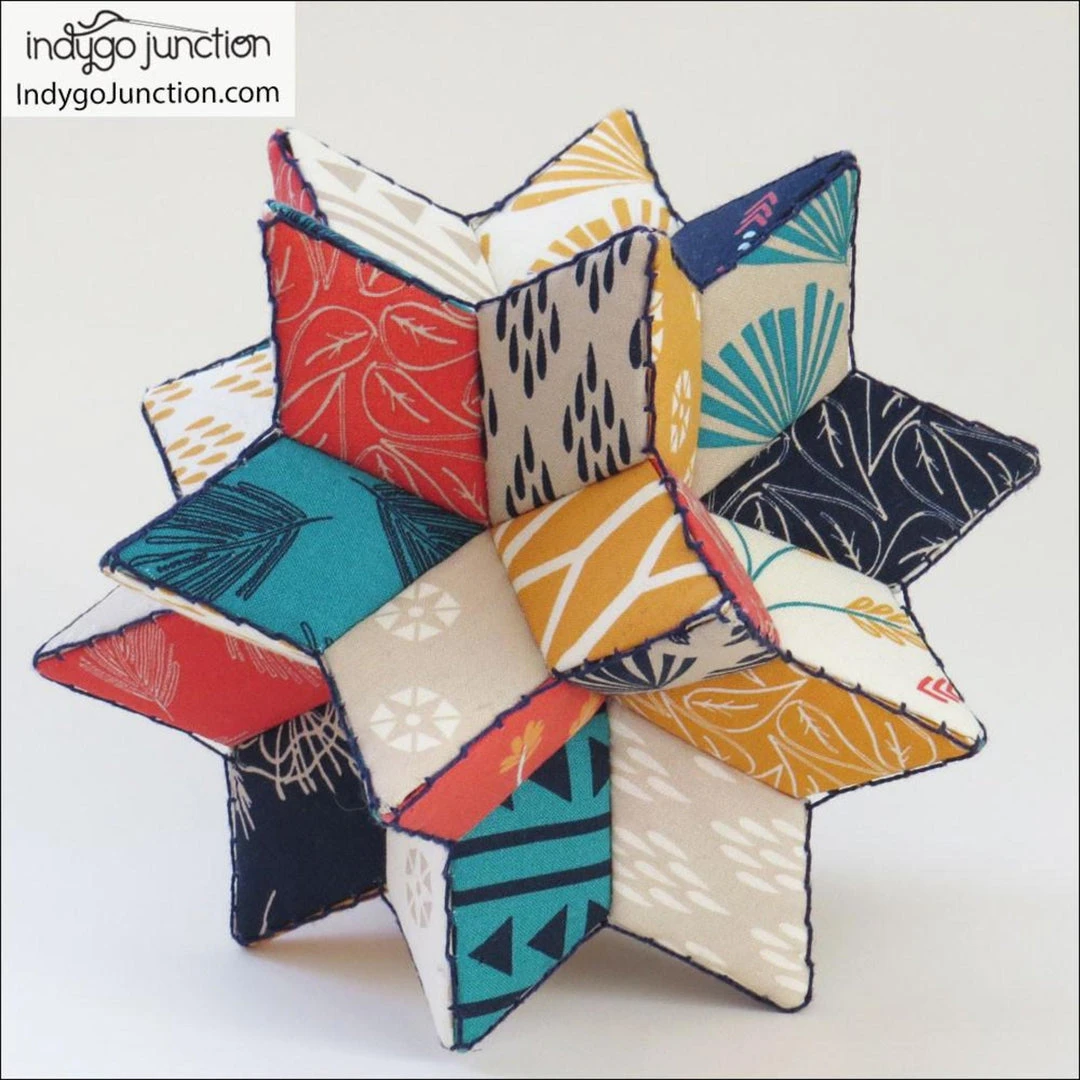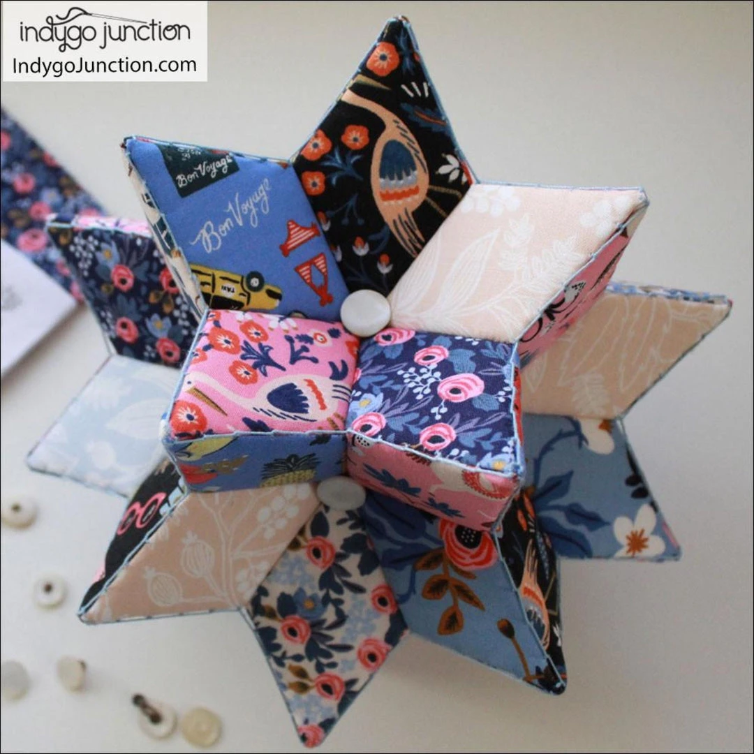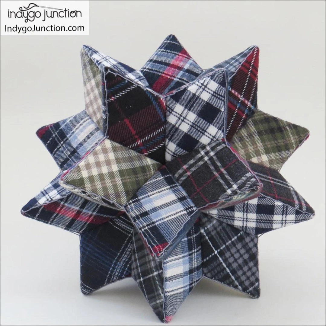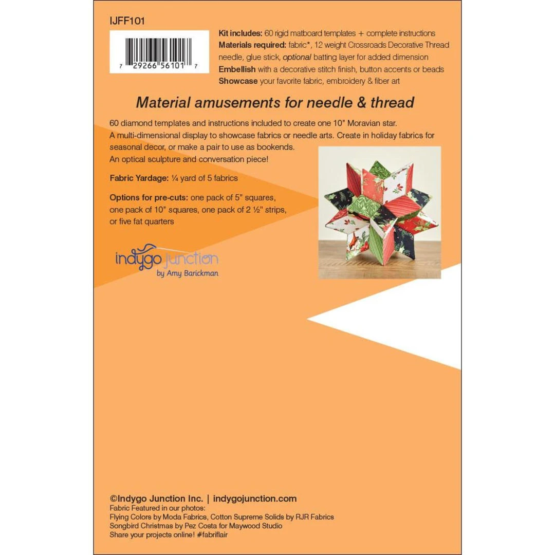 Fabriflair – paper piecing kits to create three dimensional projects! Each kit creates one 10″ Moravian star per package. Cover templates with fabric and hand stitch into a 12-sided star! If you prefer machine sewing try ourFabriflair Stabilizer and the Centerpiece Star pattern. Kit includes: 60 rigid mat board templates + complete instructions Materials required: fabric*, needle, 12 weight Crossroads Decorative Thread, glue stick, optional batting layer for added dimension. Fabric Yardage: 1/4 yard of 5 fabrics OR options for pre-cuts: one pack of 5″ squares, one pack of 10″ squares, one pack of 2-1/2″ strips, or five fat quarters.