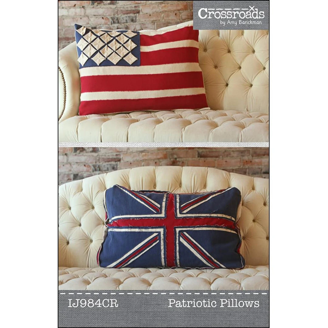Declare your love for Queen and country by displaying these standard bed sized pillows. Display them as home decor accents in the bedroom or on the sofa, or use them as floor cushions or a bed for your dog. Featuring a stylized American flag or the Union Jack flag. Recycled denim version of American flag also included. Bed pillow size: 20″ x 26″.