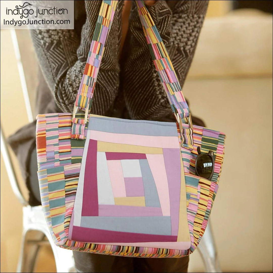 The center panel of this modern tote is the perfect canvas to show off your creative side. Utilize steam-activated shrinking fabric to create your own exciting fabric texture or stitch a wonky log cabin. Perfect bag for showcasing your favorite fabrics. Bag has interior pockets & the exterior sports generous side pockets as well. Size: 9.5″ H x 15″ W (at top & tapers to 9.5″ at bottom) x 4.25″ D excluding handles.