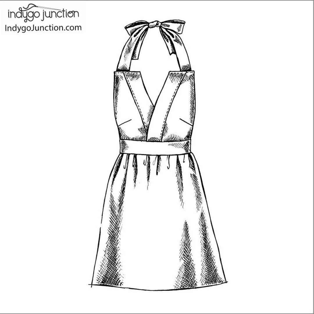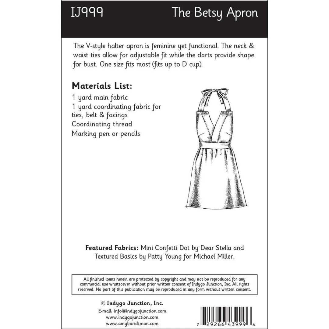 The V-style halter apron is feminine yet functional. The neck & waist ties allow for adjustable fit while the darts provide shape for bust. One size fits most (fits up to D cup).