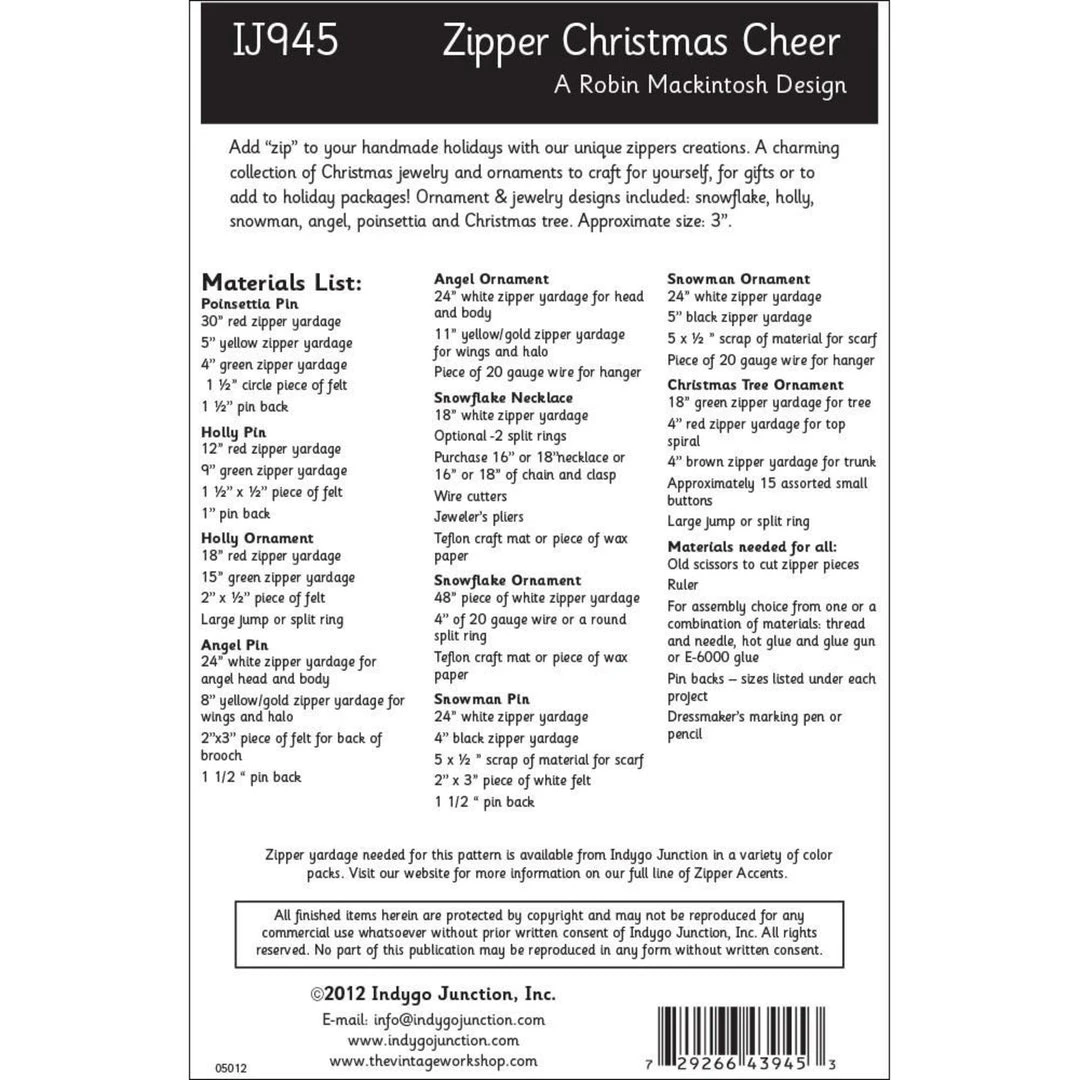 Add “zip” to your handmade holidays with our unique zippers creations. A charming collection of Christmas jewelry and ornaments to craft for yourself, for gifts or to add to holiday packages! Ornament & jewelry designs included: snowflake, holly, snowman, angel, poinsettia and Christmas tree. Approximate size: 3″. PATTERN ONLY Zippers are not included.