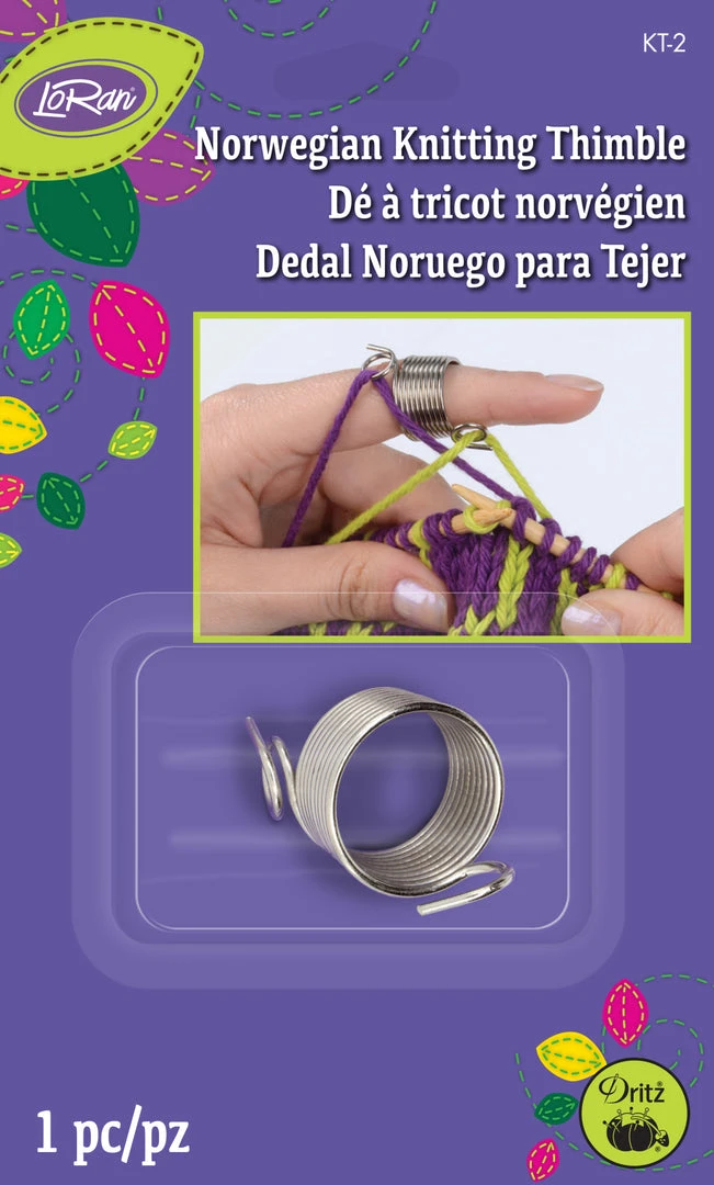 Flexible wire coil thimble is worn on the finger and is used to control tension, eliminate chaffing or control multiple strands of yarn.
