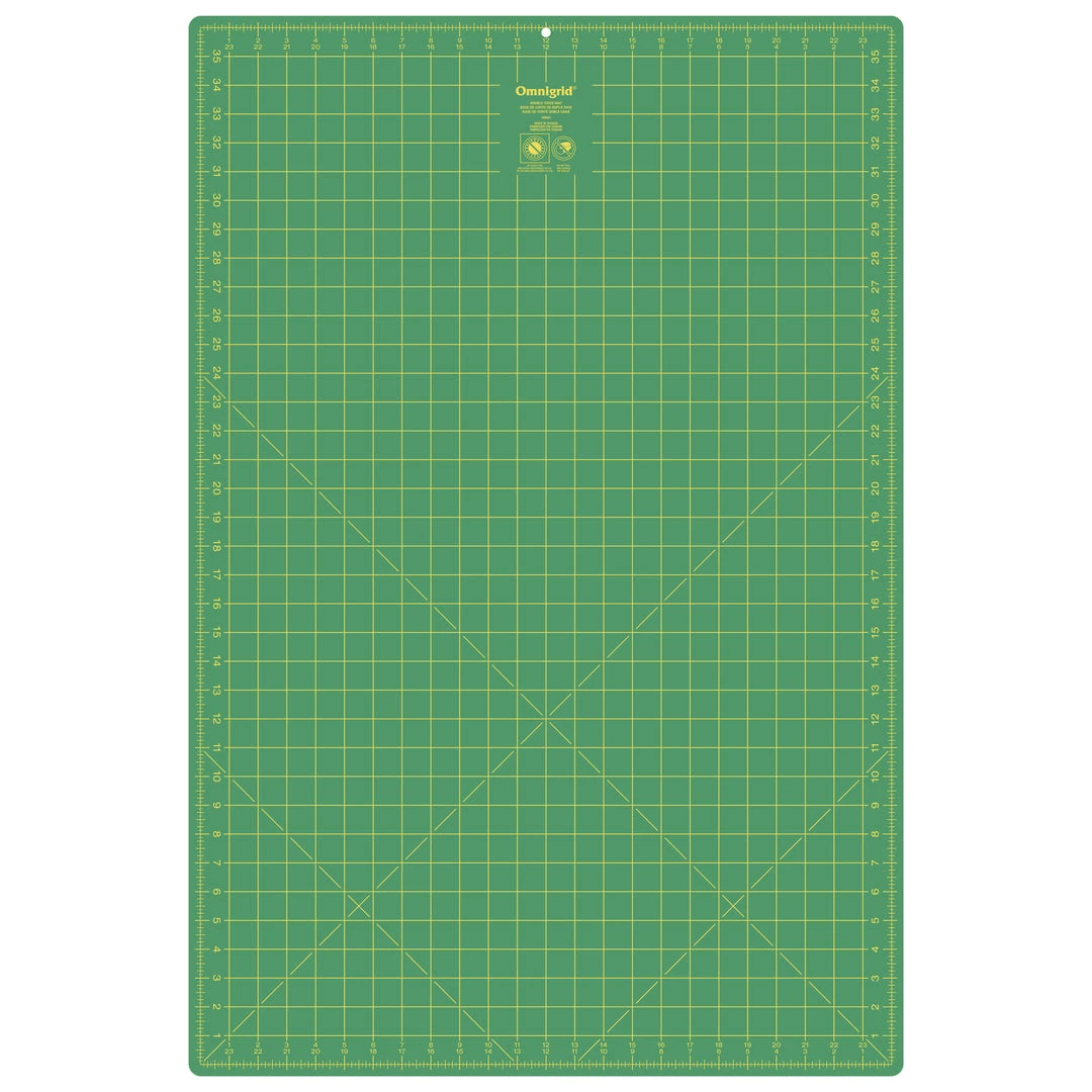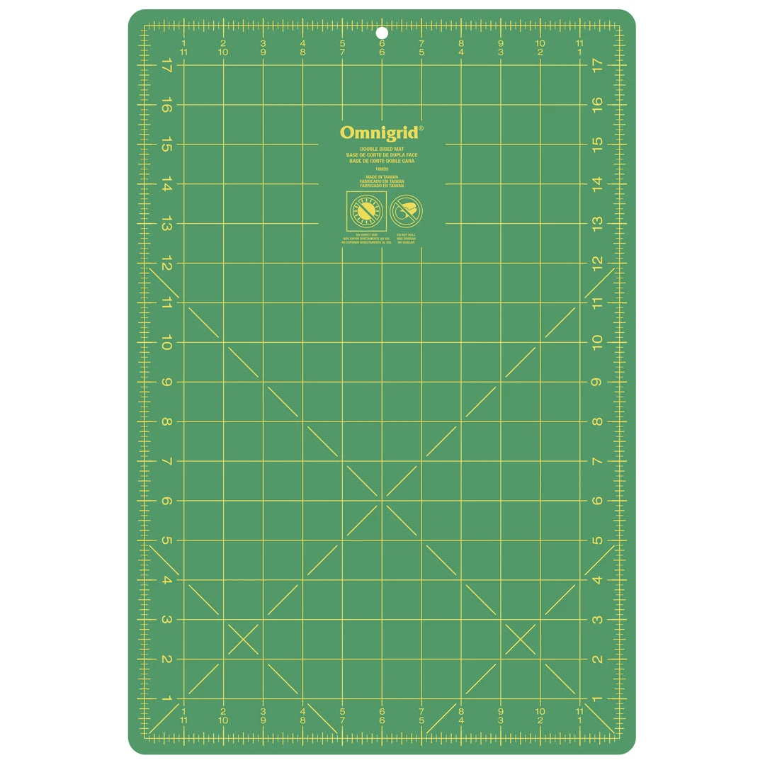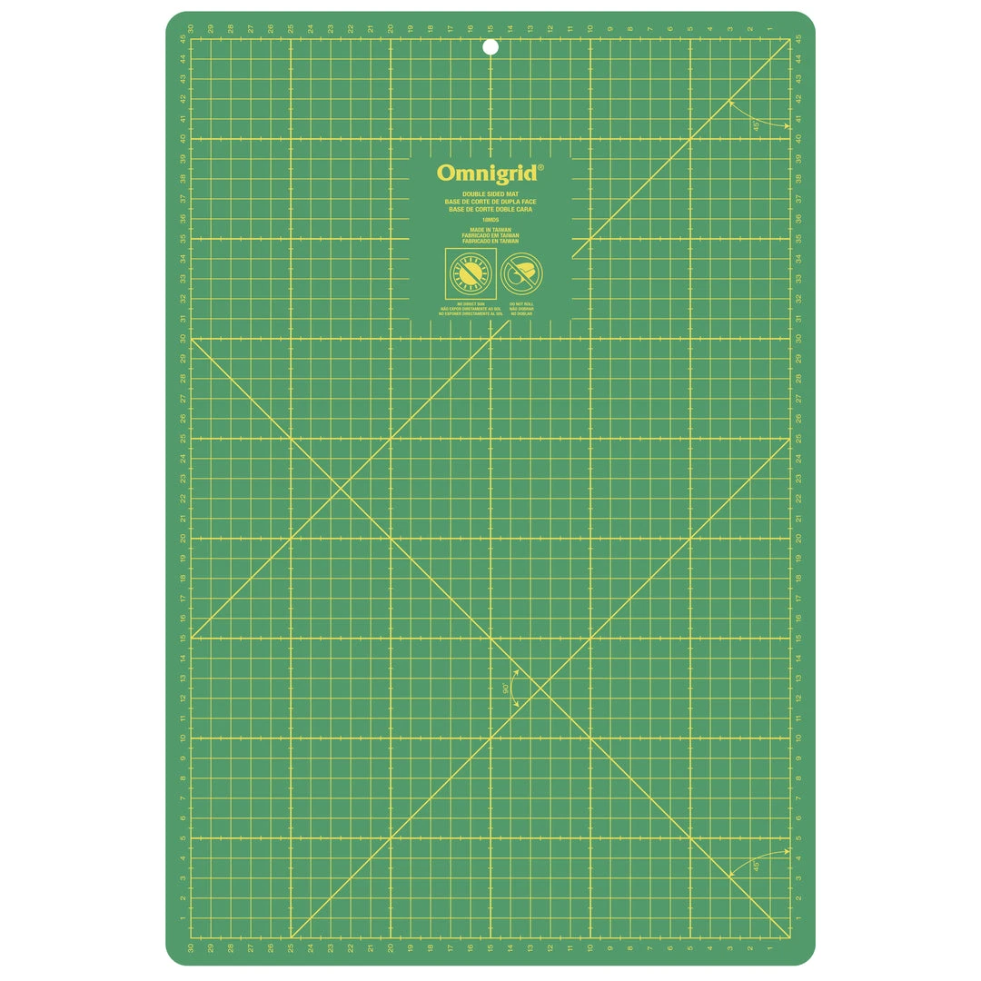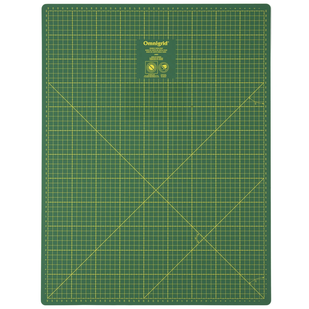 The small Omnigrid double-sided cutting mats are ideal for use in quilting for cutting fat quarters and smaller pieces of fabric; their versatile size is portable and convenient for travel, and also ideal for smaller sewing, quilting and crafting areas. The large Omnigrid double-sided cutting mats are suitable for cutting borders and bias strips; they’re also convenient for measuring fabric by the yard.
