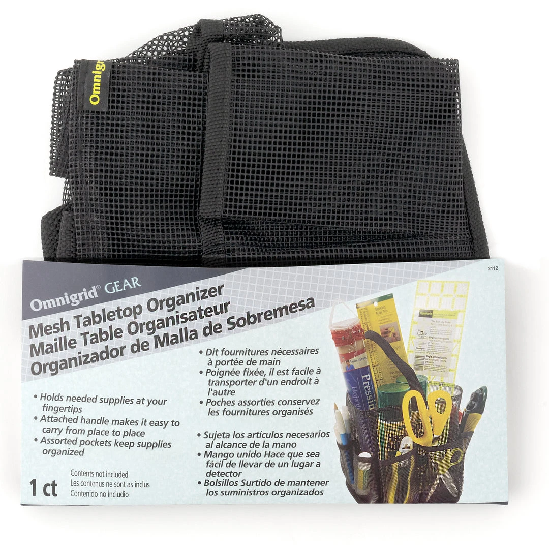The Omnigrid Gear mesh tabletop organizer holds needed quilting and sewing supplies at your fingertips; assorted pockets keep supplies organized and it has a handle to easily carry it from place to place.