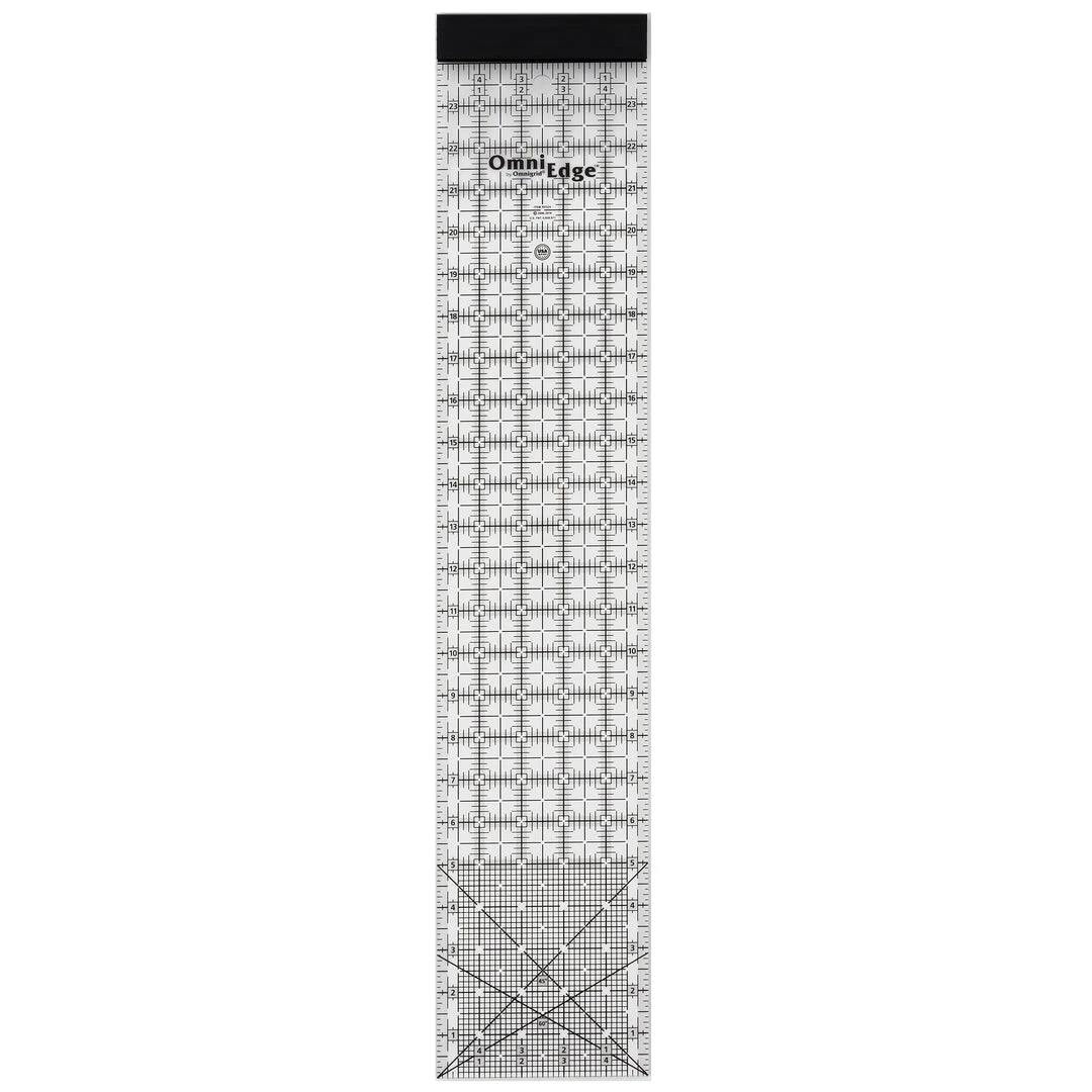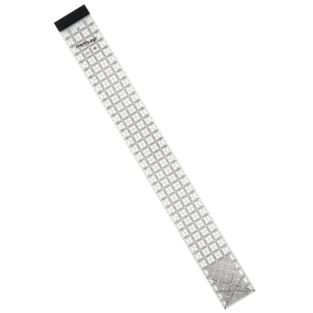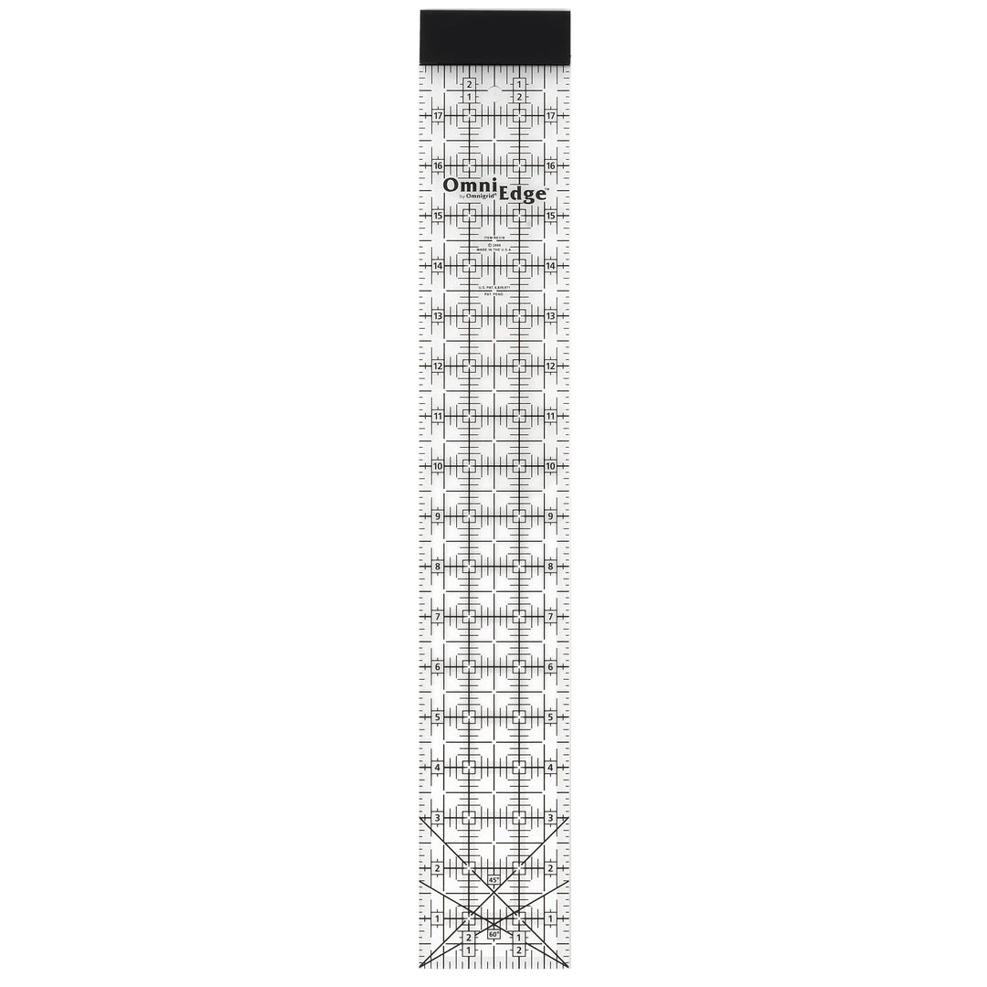 The OmniEdge ruler has a lip that catches on your cutting mat to prevent slipping during cutting; the ruler’s lip, or channel, is easily removed to position the ruler as desired.