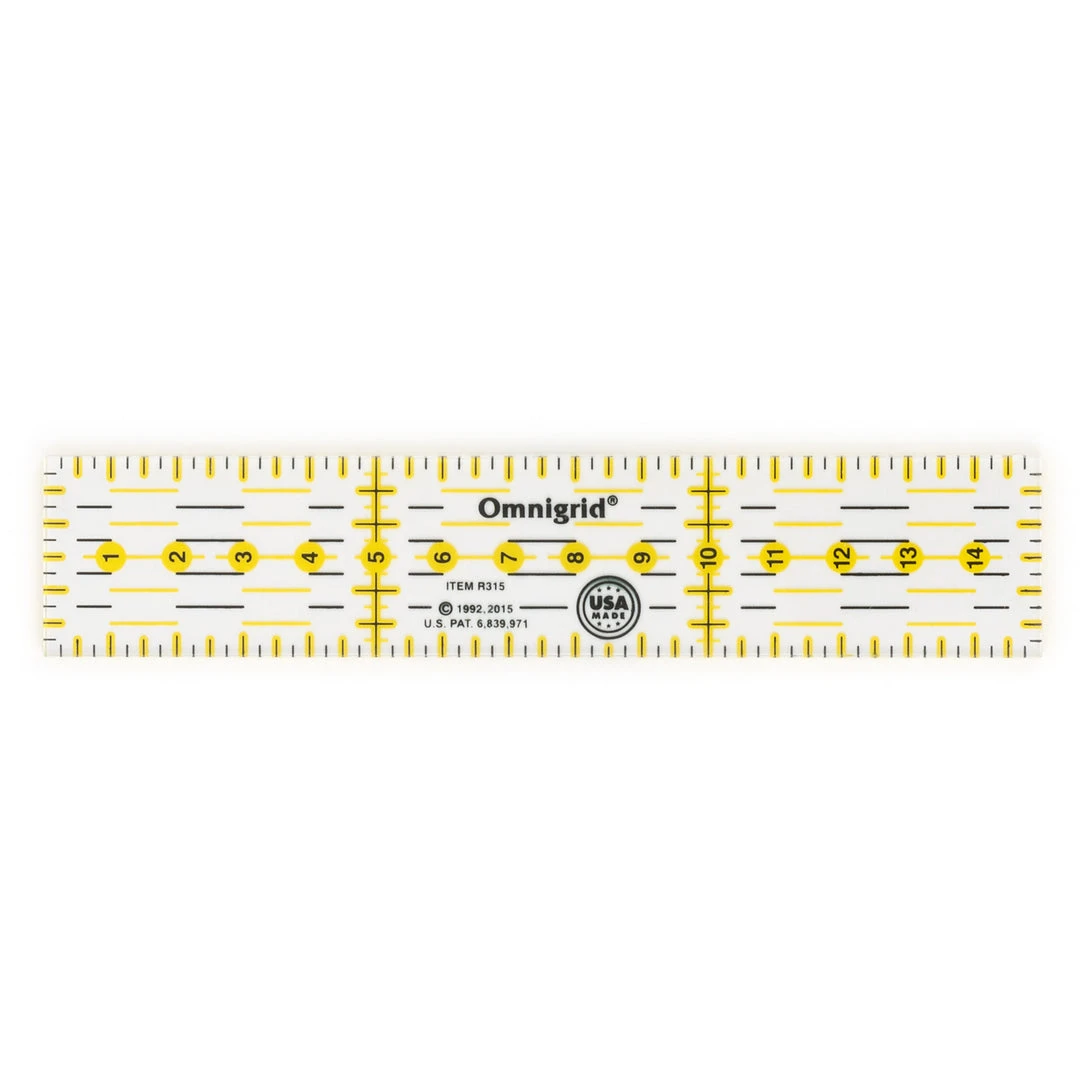 Omnigrid Metric Quilter’s Ruler assists with quilting projects and has centimeter markings on it.