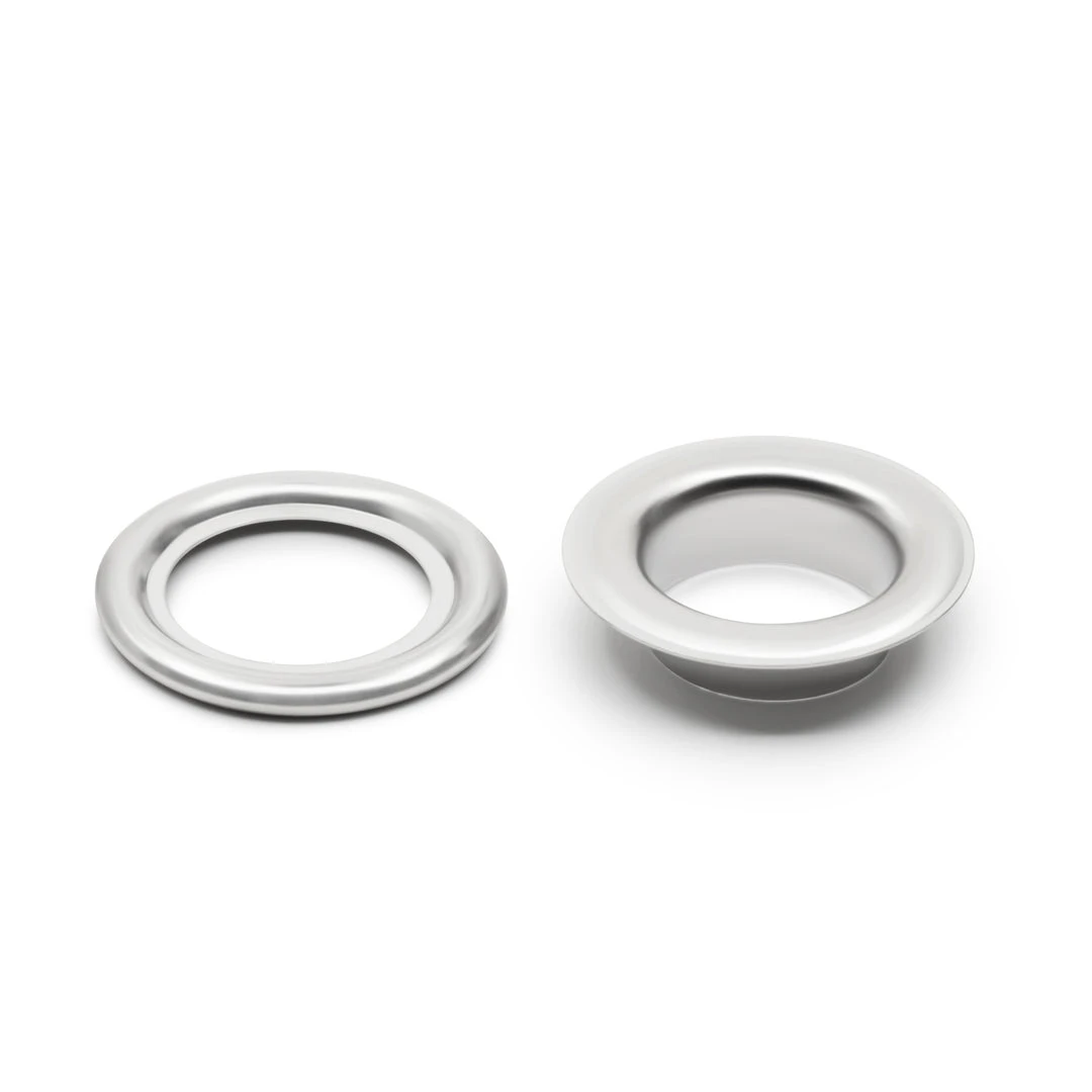 These classic 2-piece eyelets can be used on tarps, banners, totes, curtains, garment and more! Made from rustproof eyelets, they can be attached with a hammer and included tool. Use for lacing, decoration, or anywhere you need a reinforced hole.