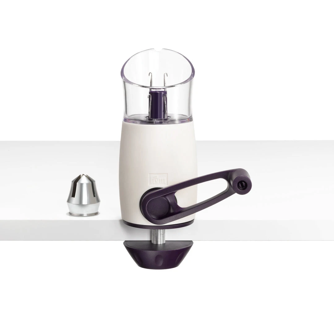 The Prym Comfort Knitting Mill makes it easy to knit I-Cord tubes for embellishments, weaving, accessories & more. Secures to table or can be used in hand. Handle turns in either direction for right or left-handed use. Use with lightweight, smooth yarns for best results.