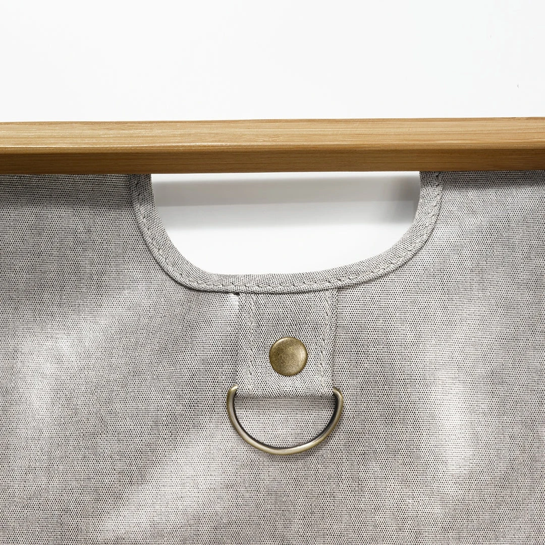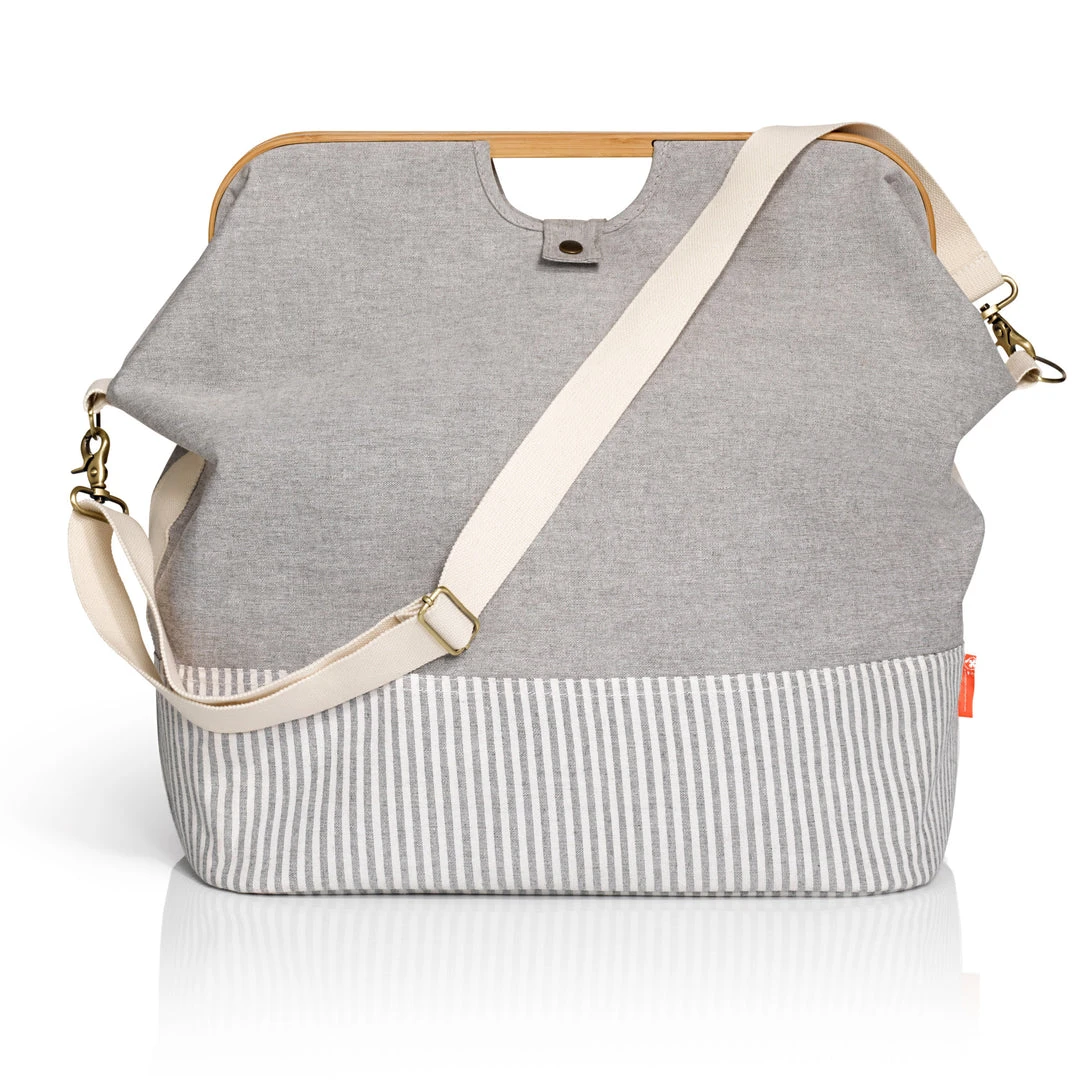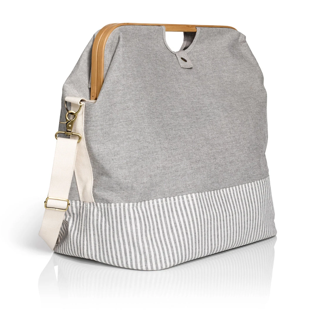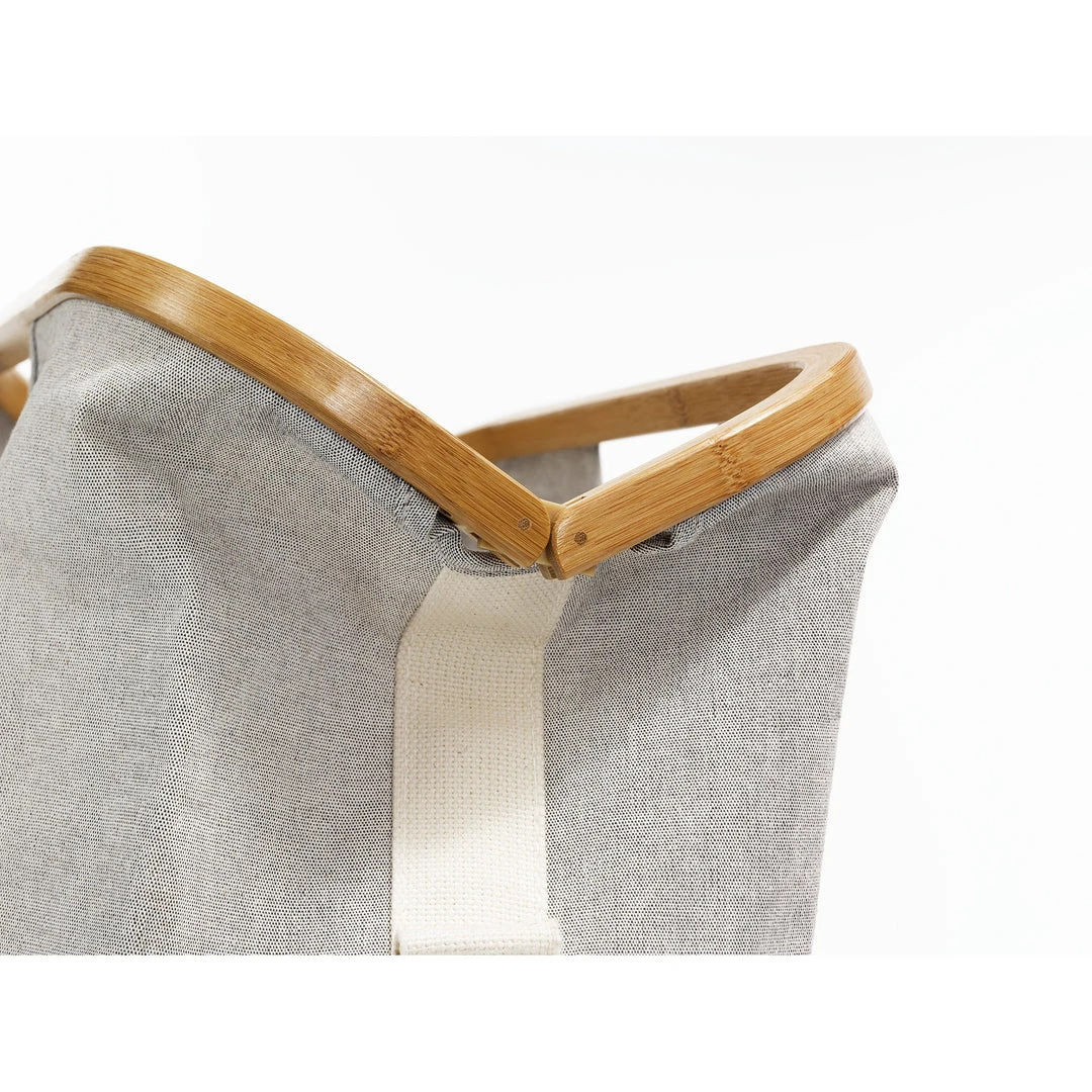 - Bamboo handles provide structure, elegance and compliments gray canvas fabric