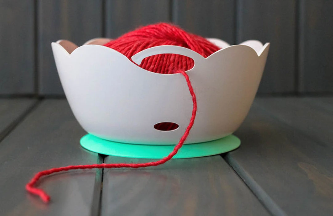 - Rubberized, non-slip base to keep bowl from slipping as your yarn flows through the scalloped yarn director
